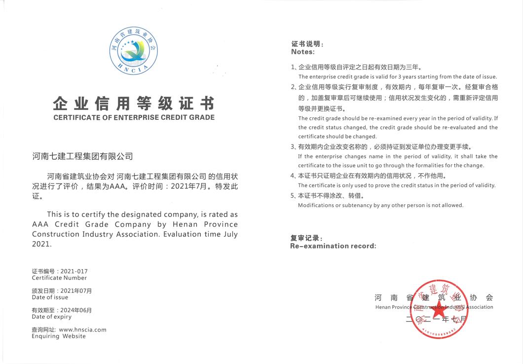 河南省AAA 企業(yè)信用等級(jí)證書202